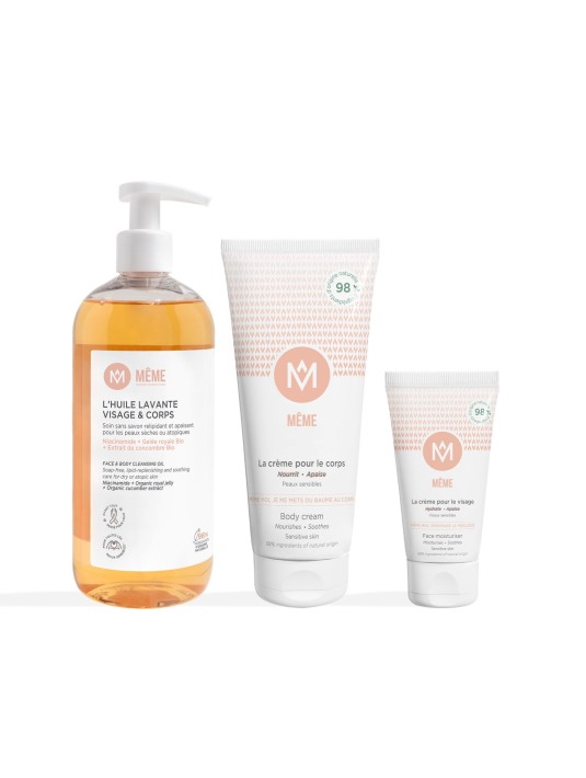 Le Coffret Hydratant – Même Cosmetics réunit trois essentiels spécialement formulés pour prendre soin des peaux sèches, sensibles, réactives ou fragilisées par les traitements médicaux.